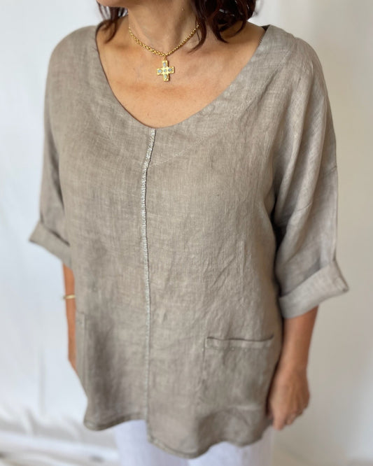 Linen Top - Taupe