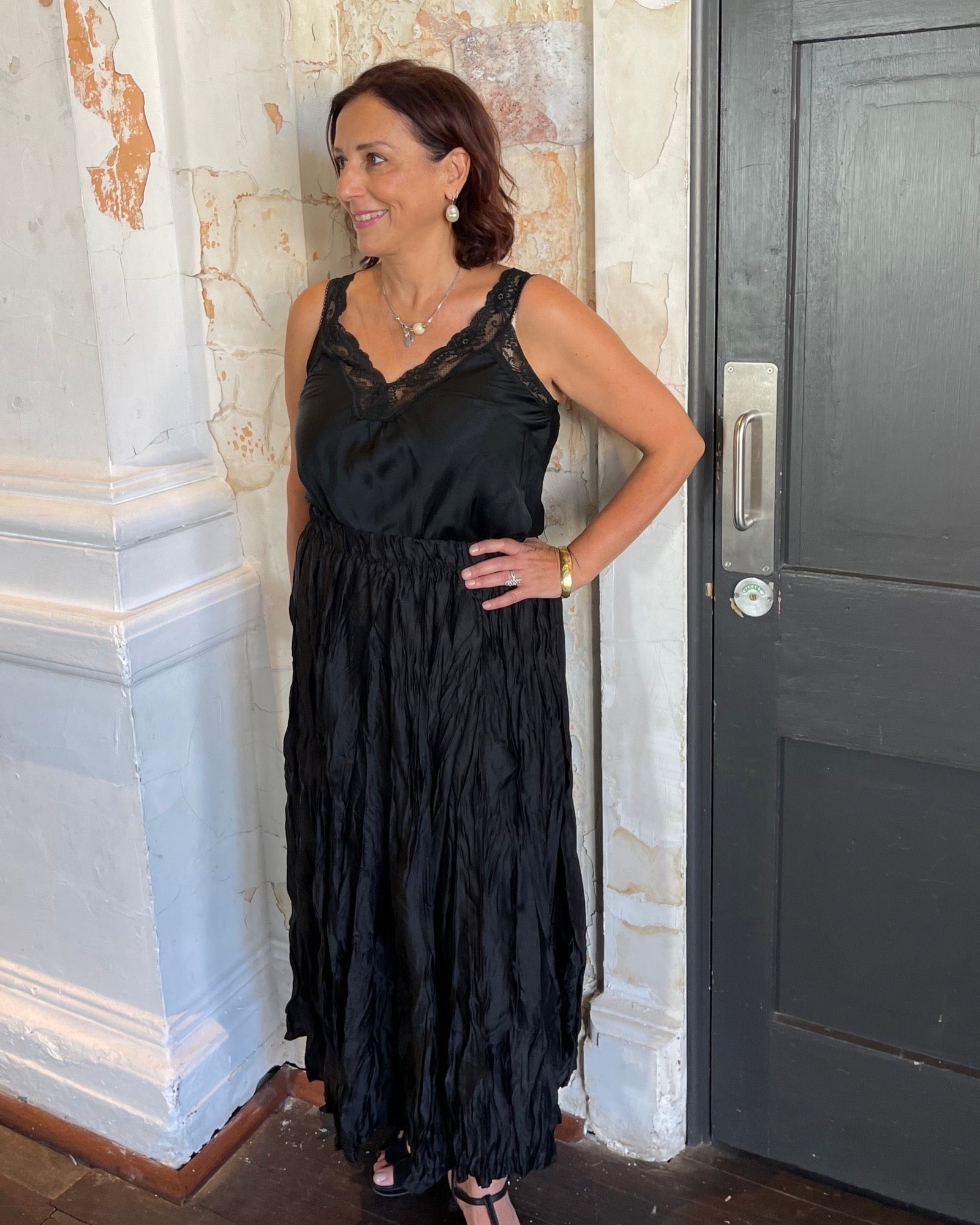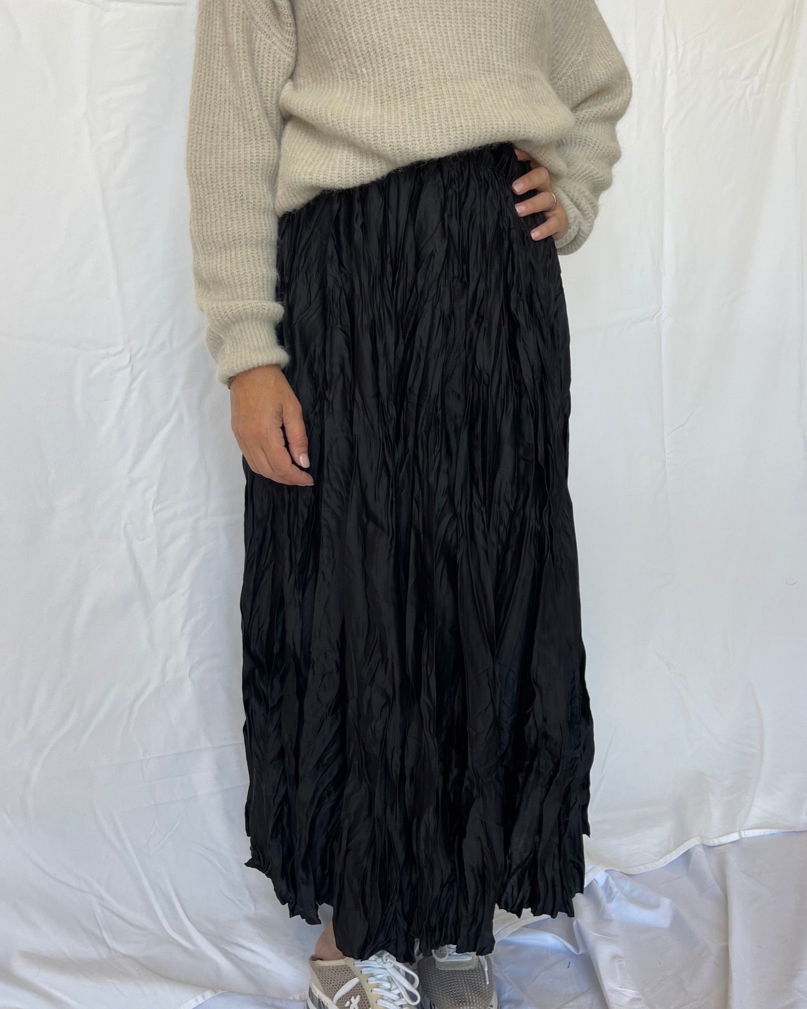 Introducing our Crinkle Skirt. With a comfortably elasticated waist, this flowing piece exudes femininity and luxury. Perfect for any occasion, it's a must-have for your transeasonal wardrobe. Elevate your style with this elegant addition.