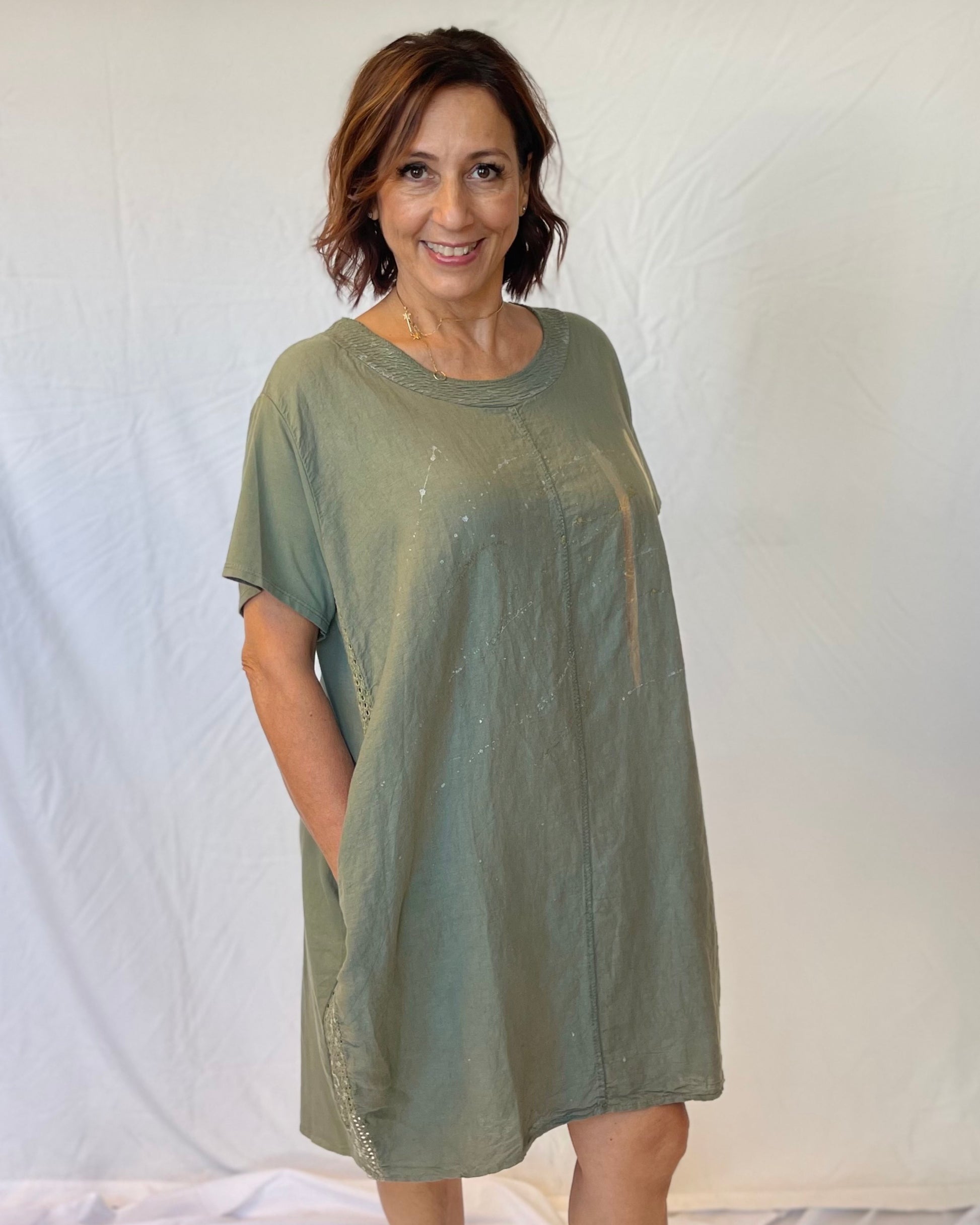 The Dress offers the ultimate mix of effortless, easy style and summer cool. Perfect for any occasion, this dress is an elegant and sophisticated way to stay comfortable during hot summer days. With a round neck, flowing sleeves and discreet side pockets, you can accessorize for a casual look with flats or dress it up with heels for a night out.