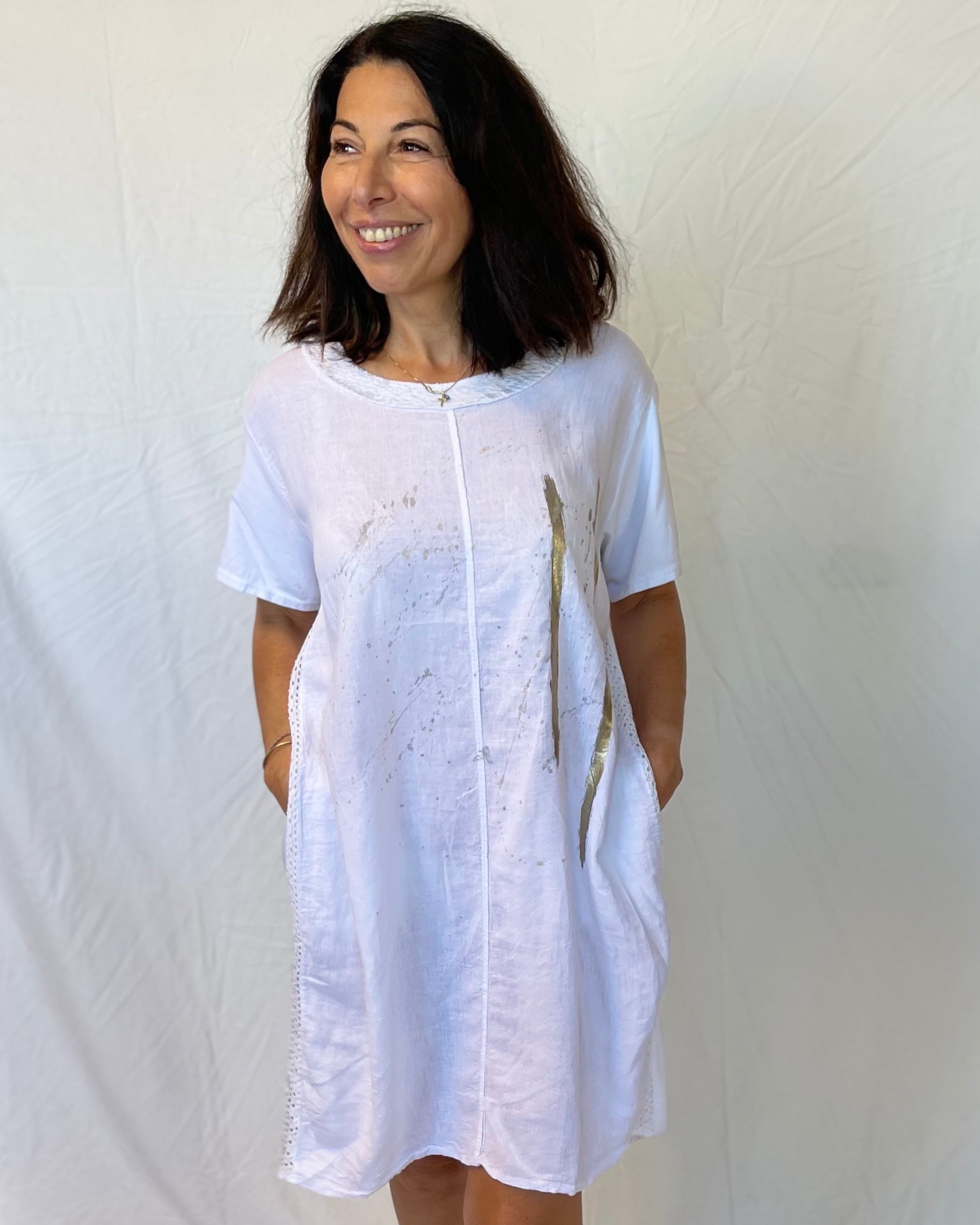 The Dress offers the ultimate mix of effortless, easy style and summer cool. Perfect for any occasion, this dress is an elegant and sophisticated way to stay comfortable during hot summer days. With a round neck, flowing sleeves and discreet side pockets, you can accessorize for a casual look with flats or dress it up with heels for a night out.