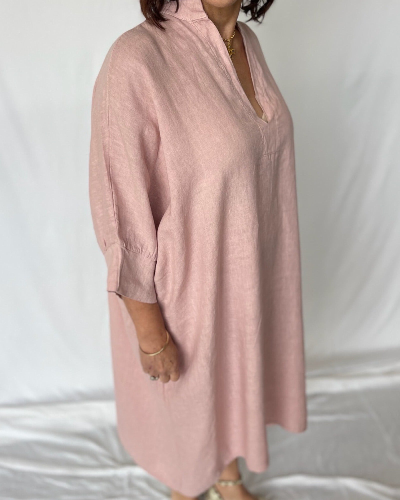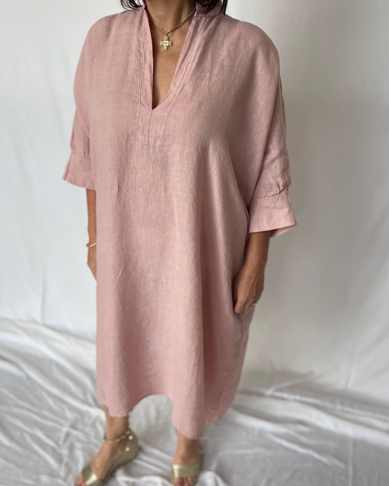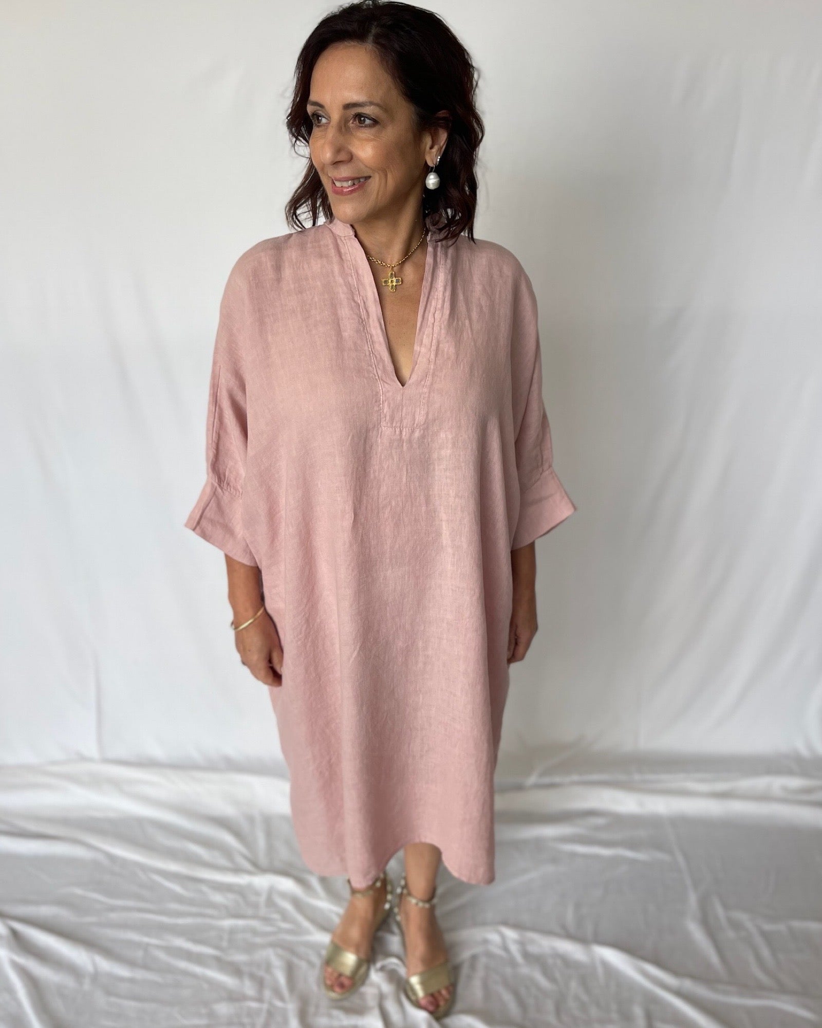 Indulge in luxury with our Linen Kaftan in a stunning Musk color. This elegant piece features a grandpa collar and 3/4 sleeves, creating a sophisticated and exclusive look. Made from high-quality linen, it's perfect for any occasion. Elevate your style with this luxurious and versatile piece.