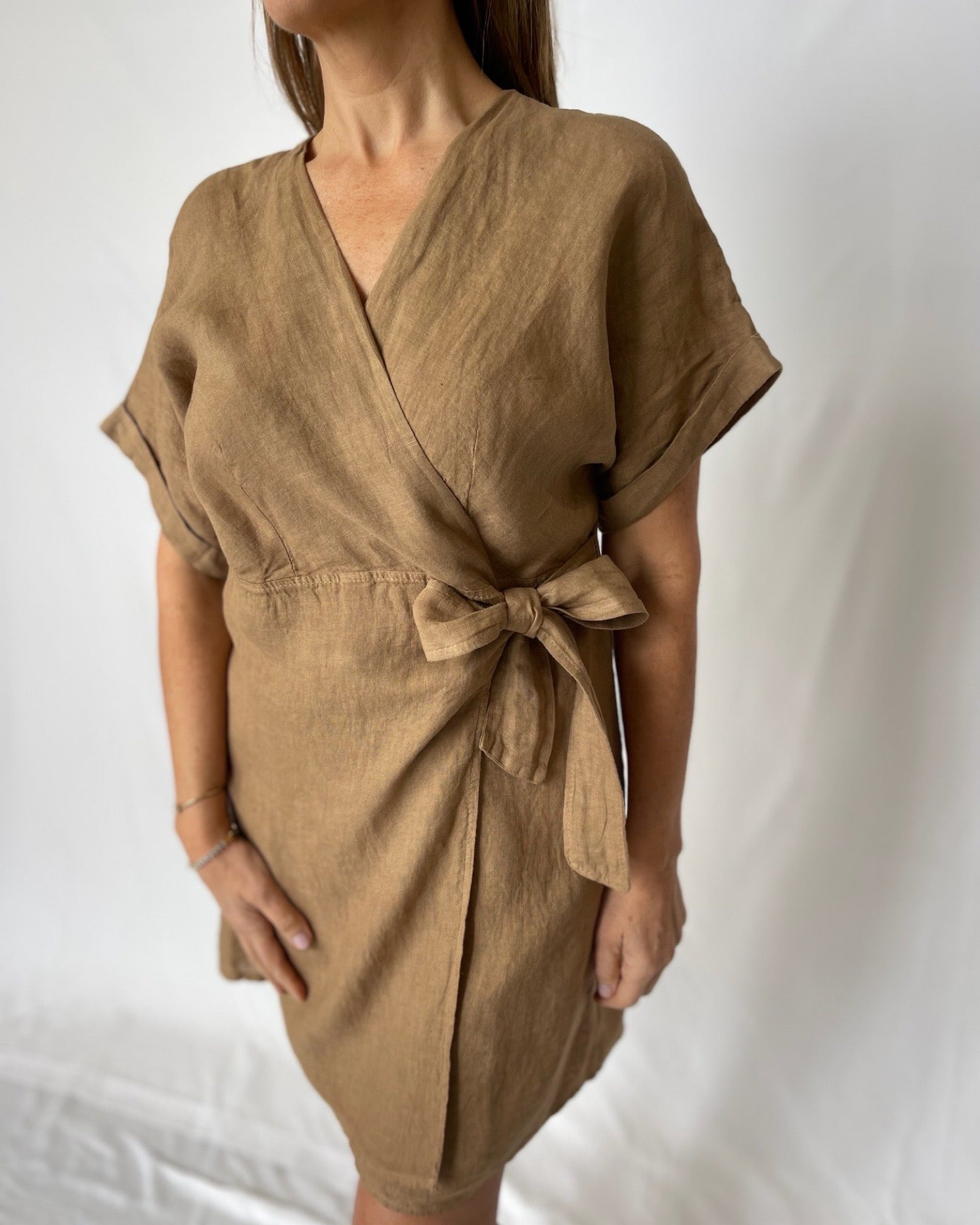 Dazzle in our Linen Tie Dress! Its unique and striking wrap and tie detail gives it a gorgeous feminine look (perfect for showing off those curves). Tailored beautifully to your body shape, this dress is both stylish and comfortable (safety never looked so good).