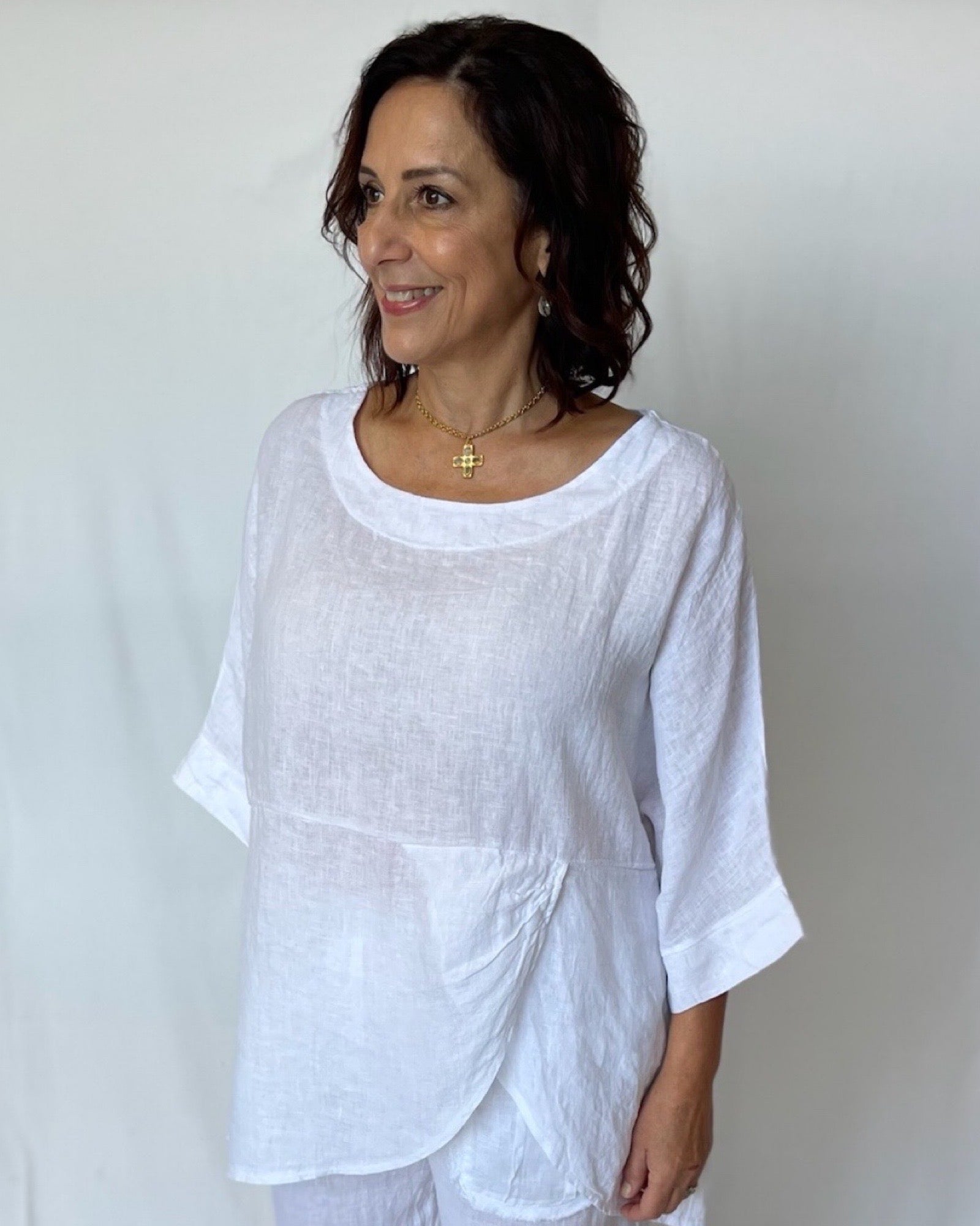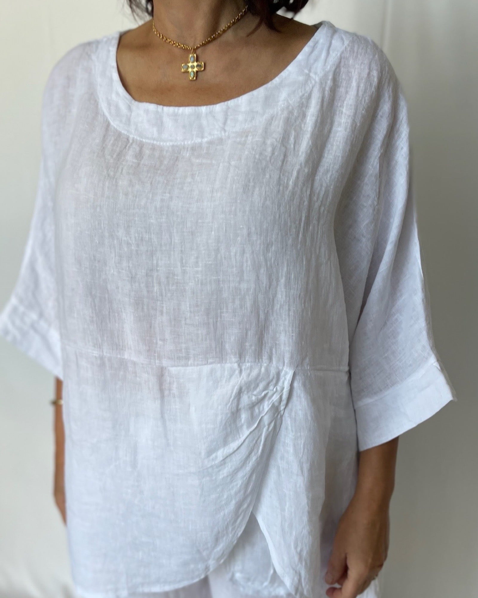 Indulge in luxury with our elegant and oversized Linen Top in Musk. The classy design features a unique sleeve & gaped side adds a touch of sophistication to your wardrobe. Elevate your style with this exclusive piece crafted for the elite. Perfect for all occasions.
