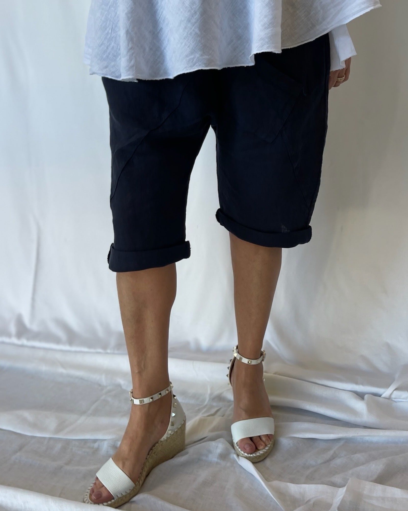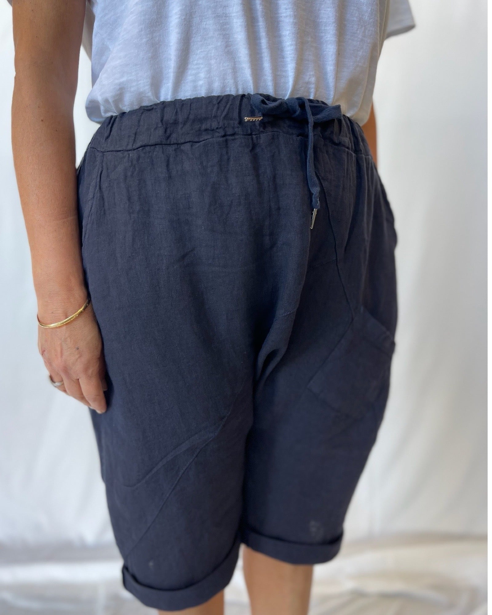 Longline Linen Shorts - Navy