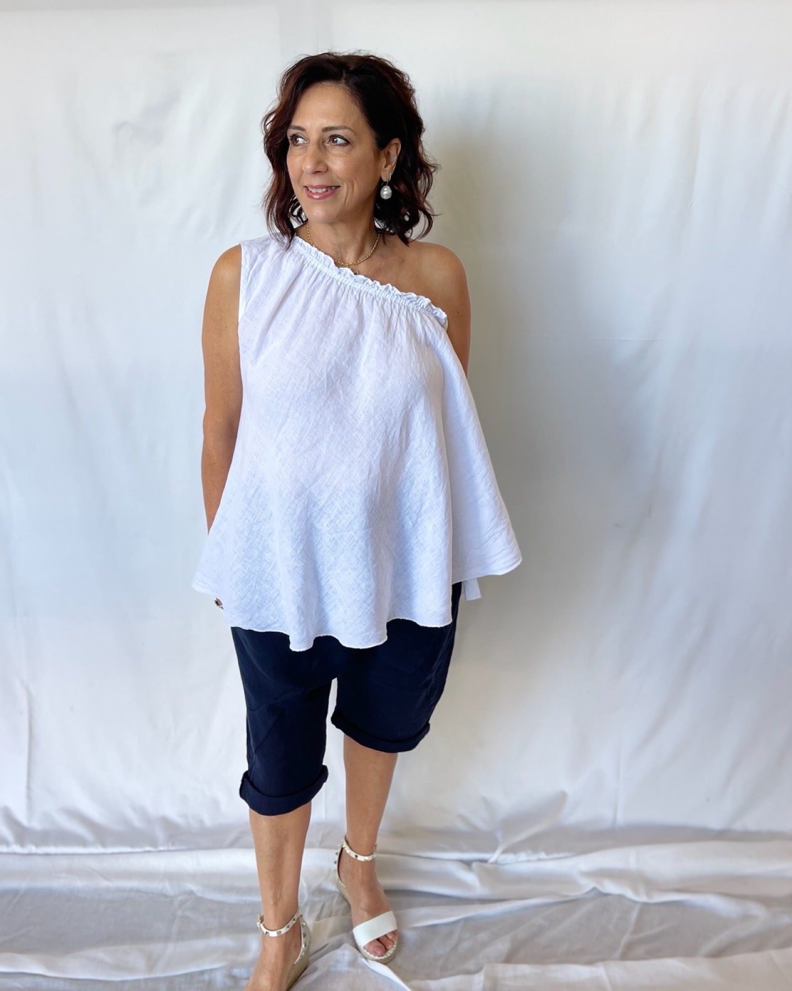 Unwind in style with our Longline Linen Shorts in Navy! With a relaxed drop fit, these funky shorts are perfect for a hot summer day. Pair with our oversized top for a cool and comfortable look, or mix things up with our One Shoulder Linen Top. Don't miss out on the ultimate summer combo!