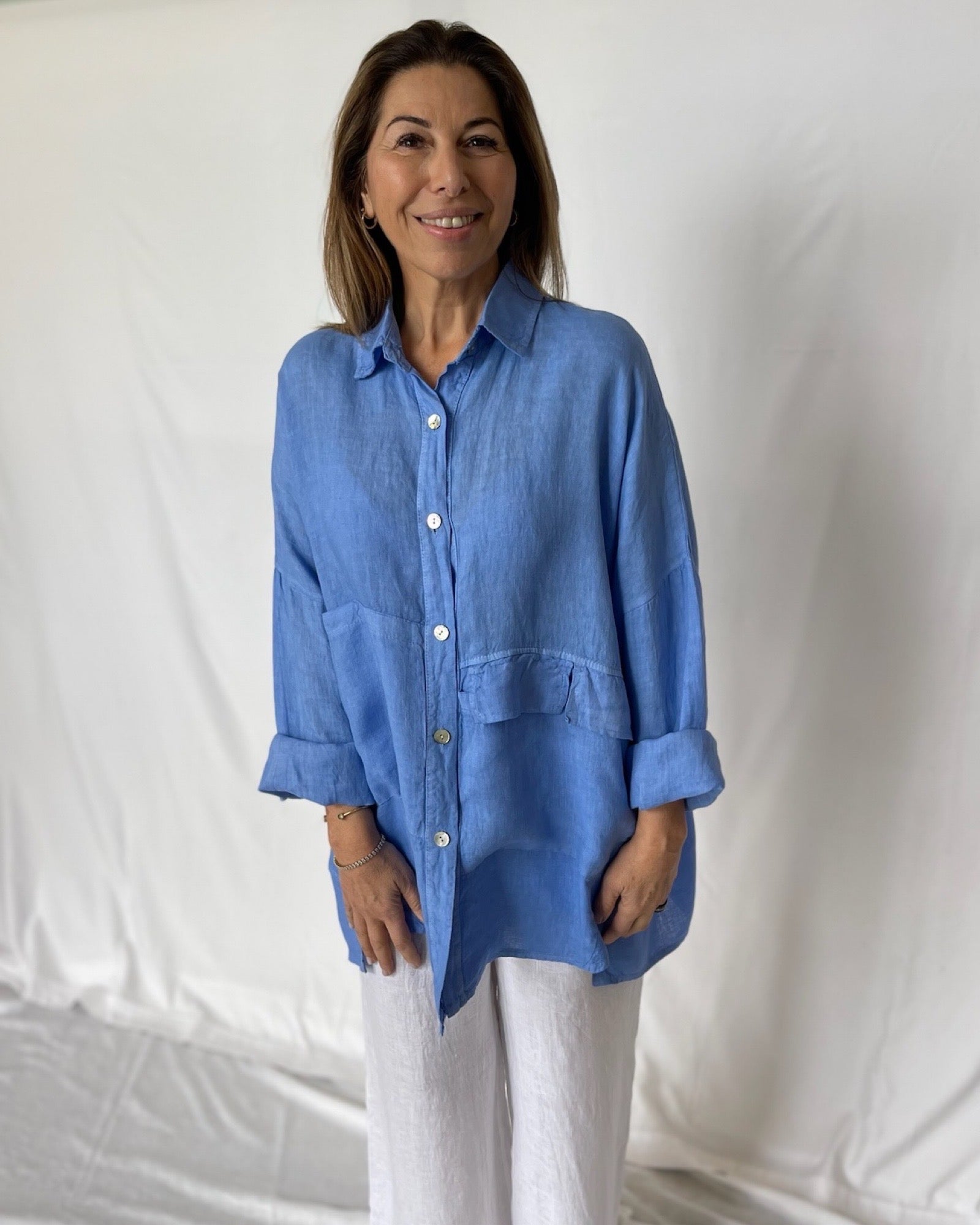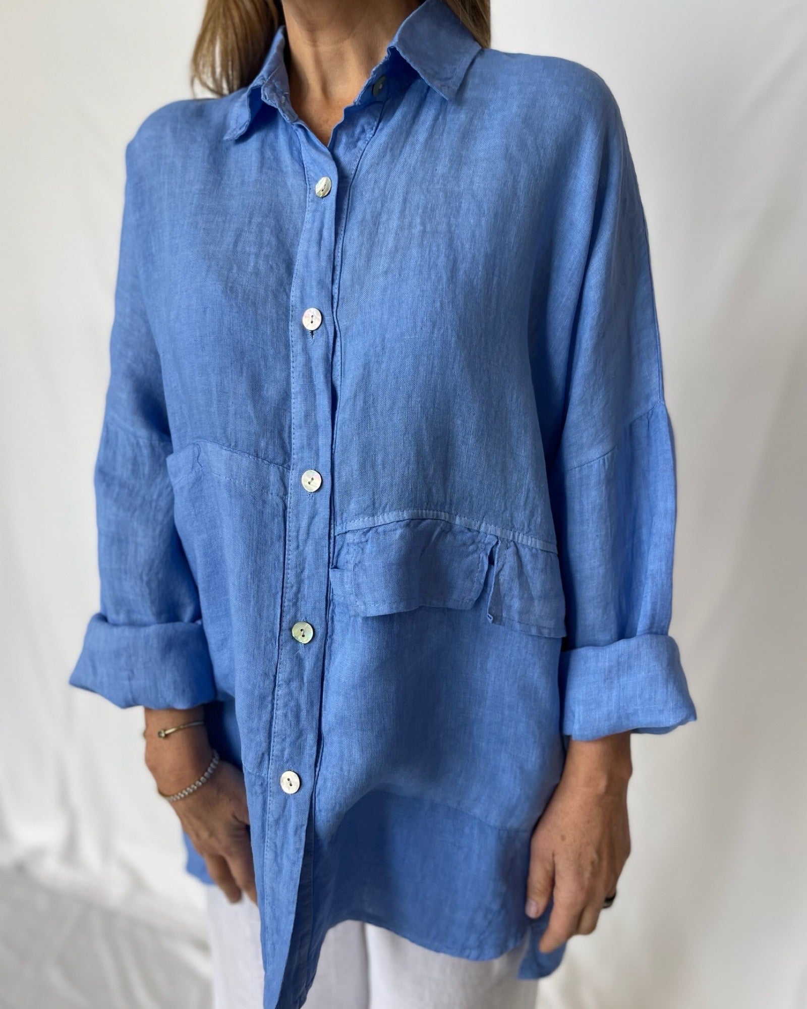 Take on the day with our bold and oversized Pocket Shirt in Raspberry. This classic shirt can be worn open for a daring and chic look. Embrace your adventurous side and make a statement with this versatile piece!