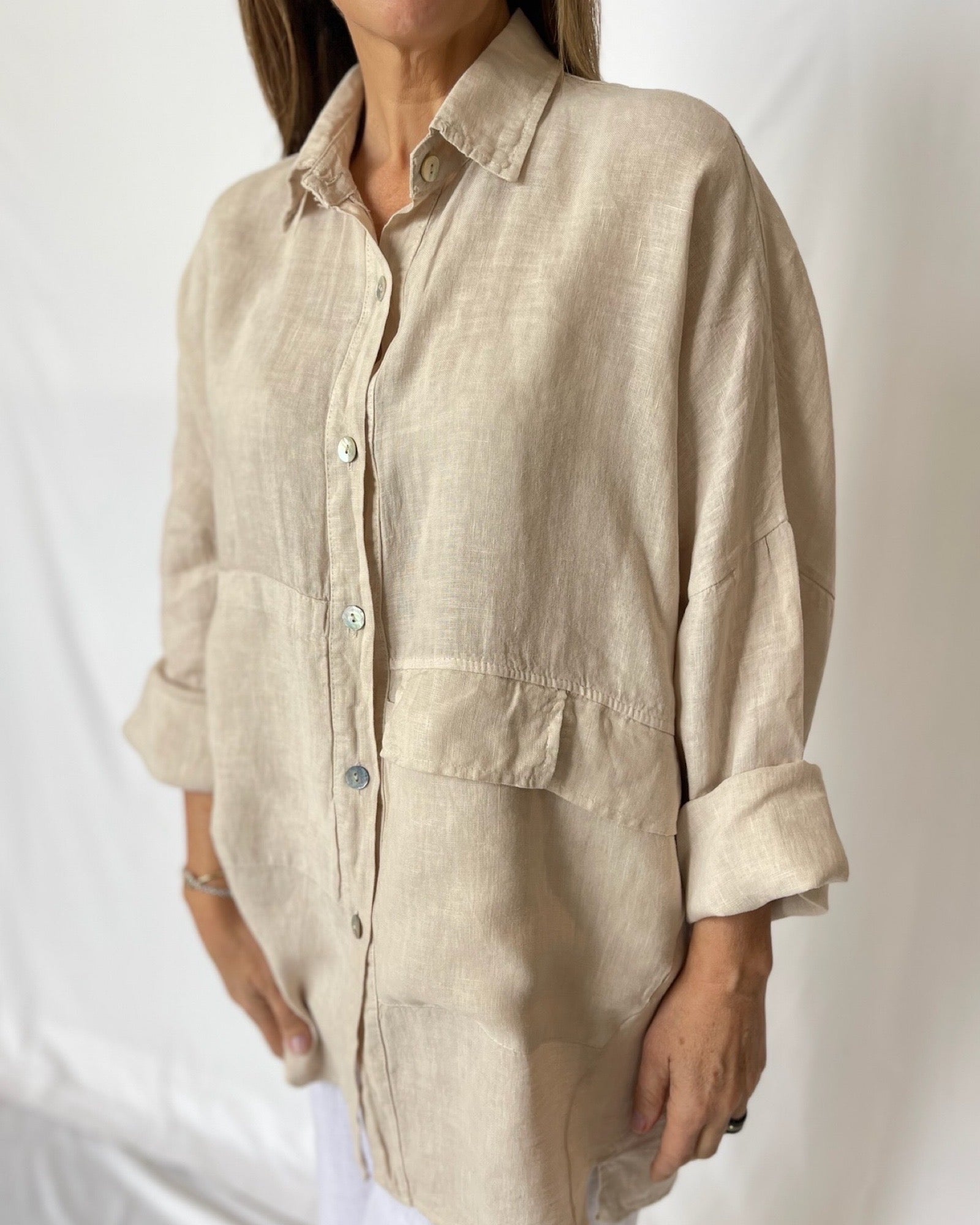 Take on the day with our bold and oversized Pocket Shirt in Raspberry. This classic shirt can be worn open for a daring and chic look. Embrace your adventurous side and make a statement with this versatile piece!