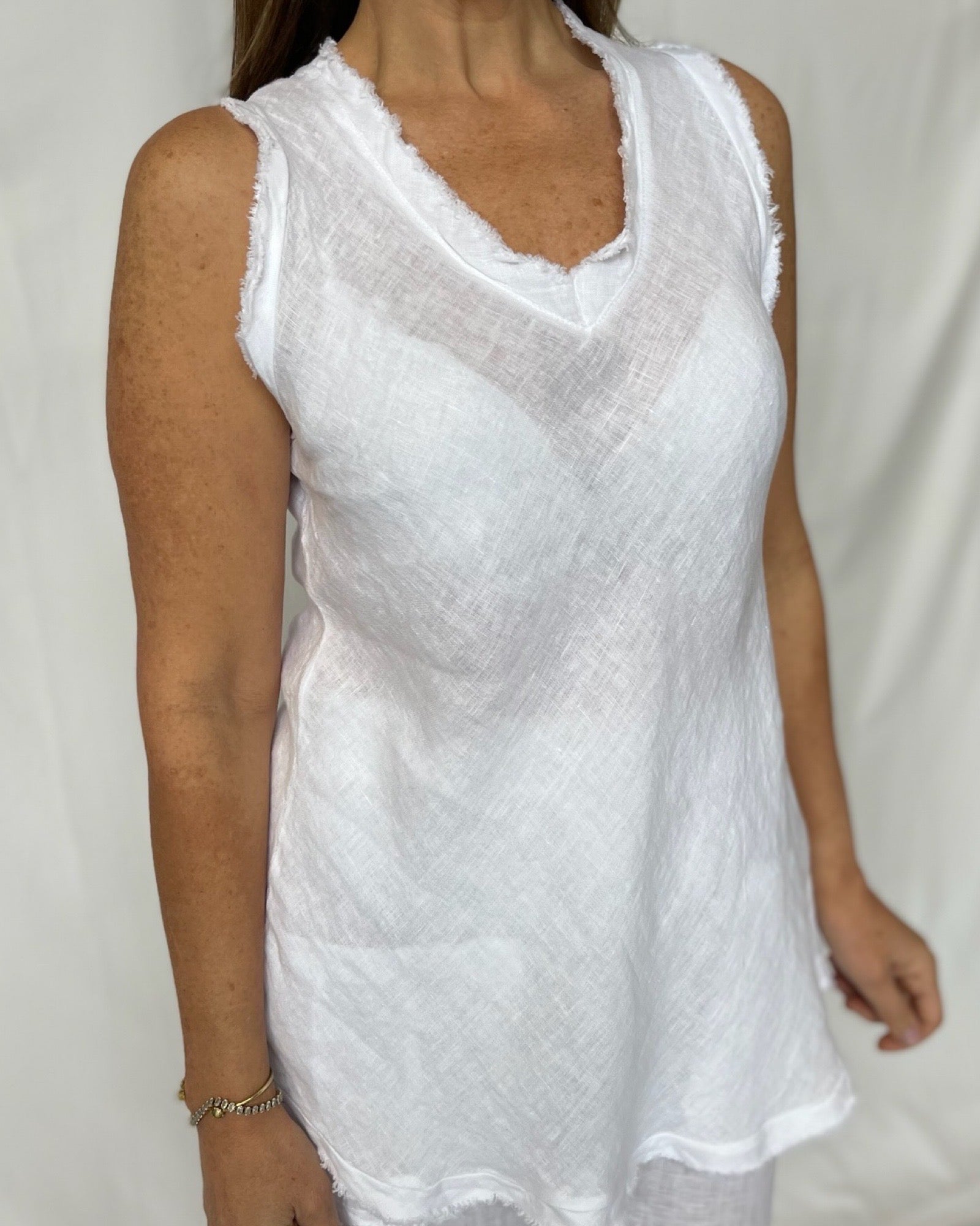 Raw Hem Top - White