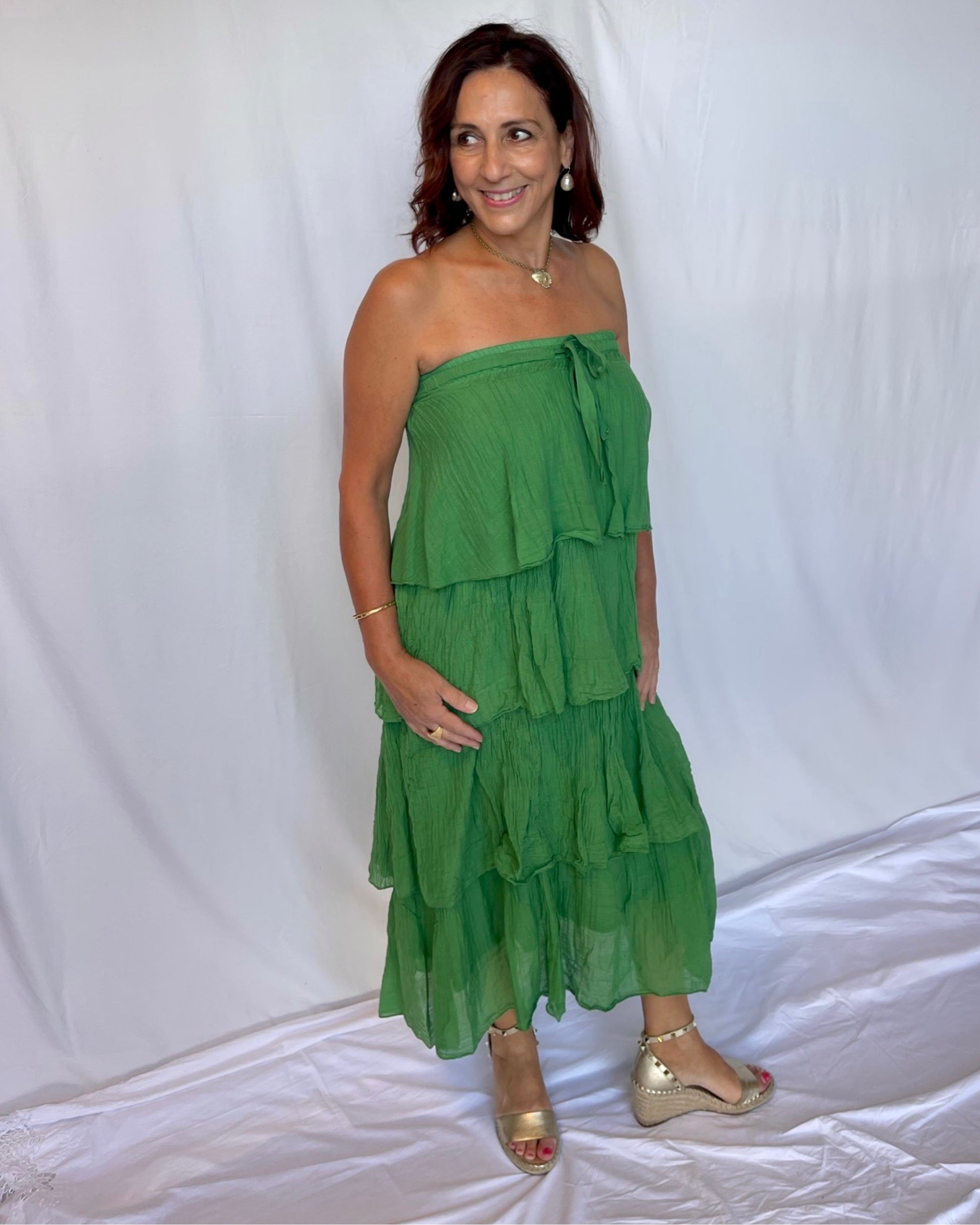 Unleash your inner goddess with this Ruffle Tiered Skirt! With ruffled tiers of fabric that sway gracefully with each move, this skirt is designed to make you look and feel fabulous. Its elasticated high cut waist makes it comfortable but flirty - and you can even turn it into a dress. Dare to show off in style!