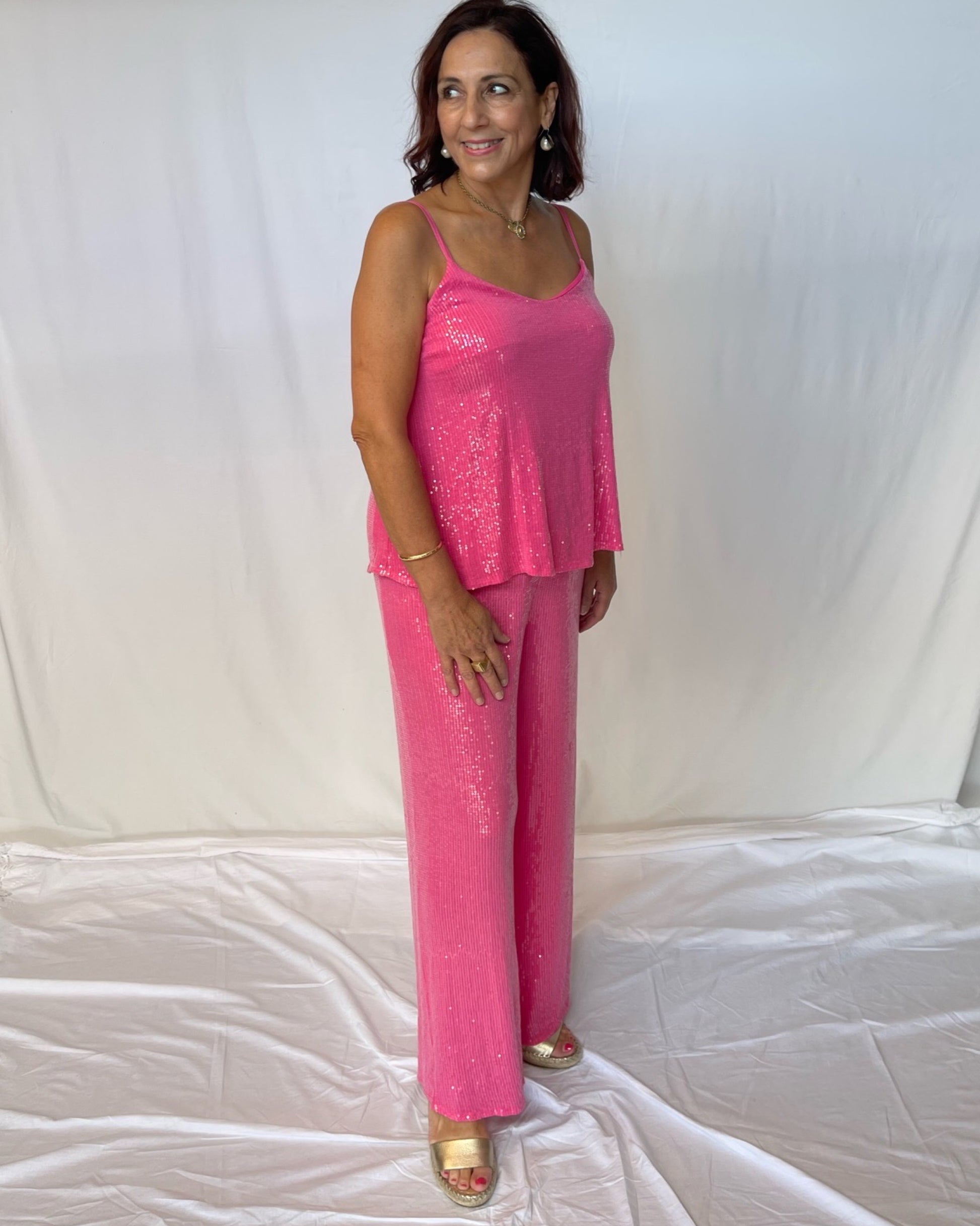 Be the life of any party with this stylish and elegant sequin top! Perfect for a wedding, night out on the town, or any fun occasion, you'll sparkle and shine. Featuring Adjustable Strapes & Partly Lined with jersey for extra comfort . Now comes the difficult decision - which color will you choose? (Hint: Get the complete look and pair it with the Sequin Pant and Sequin Jacket!).
