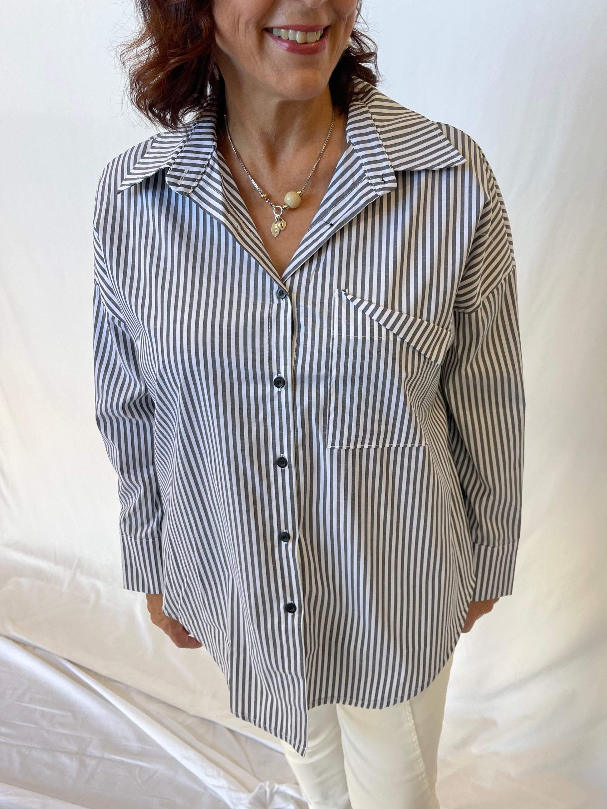 Upgrade your wardrobe with our comfortable and stylish Relaxed Cotton Striped Shirt. Made with high-quality cotton, this shirt is perfect for any casual occasion. Say goodbye to stiff and uncomfortable shirts and hello to effortless style and comfort.