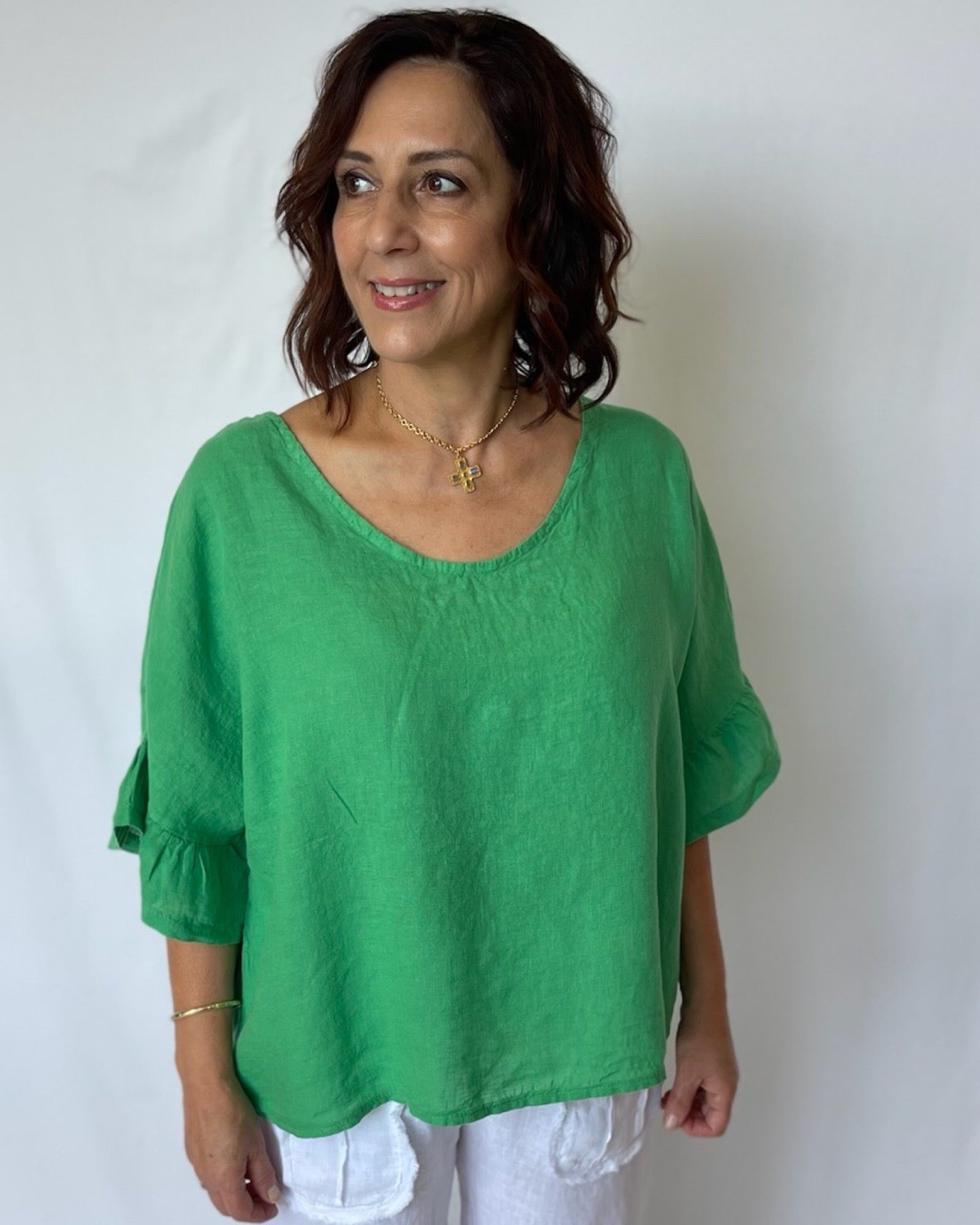 Introducing our Tie Top - the perfect addition to your summer wardrobe! With its fabulous, vibrant colors and relaxed fit, this top is designed for maximum fun in the sun. Complete with frilled sleeves and a tie at the back, it's the ultimate statement piece for any summer outfit!